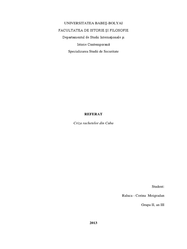 Criza rachetelor din cuba este considerată de mulți drept cea mai tensionată perioadă din timpul războiului rece. Stanciu florentina ramona universitatea creștină dimitrie cantemir facultatea de științe politice anul iii grupa ii. Criza rachetelor cubaneze a părut în acele timpuri o victorie clară a sua, dar cuba a ieșit din această criză cu un sentiment mult mai pronunțat de siguranță. Criza rachetelor sovietice din cuba a fost o confruntare între uniunea sovietica si statele unite în legatura cu proiectilele nucleare sovietice din cuba. Cele mai importante evenimente istorice care au avut loc pe data de 22 octombrie sunt: