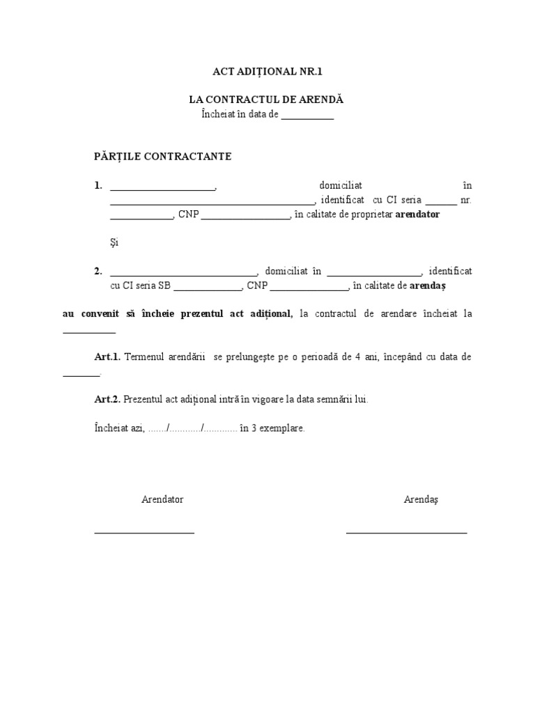 Sunteti obligat sa prevedeti in mod expres in contractul individual de munca sau in actul aditional la acesta faptul ca se presteaza o activitate in regim de telemunca (amenda 10.000 de lei pentru fiecare persoana) La sfarsitul lunii se hotaraste ca nu se poate sustine acest salariu si in urma discutiilor cu raspuns: Modificarea salariului se realizeaza in baza acordului de vointa al. Savesave model de act aditional pentru majorarea salariului. Alte exemple de în care se semnează un act adițional la contractul individual de muncă: