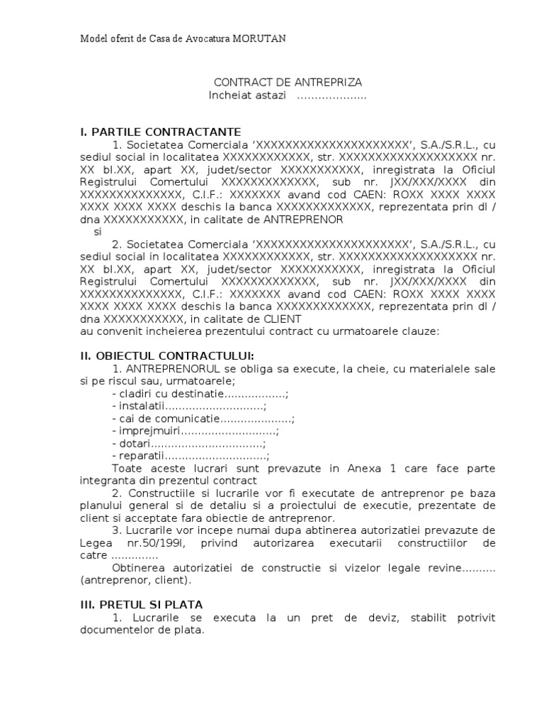 Home » informaţii utile » modele de contracte » contract de antrepriză.