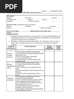 Fisa de evaluare, intocmita in conformitate cu cerintele activitatilor desfasurate in cadrul firmei dvs., alaturi de procedurile de evaluare a. Puteti descarca fisele dand click pe titlurile urmatoare: Identificarea cauzelor care au determinat.