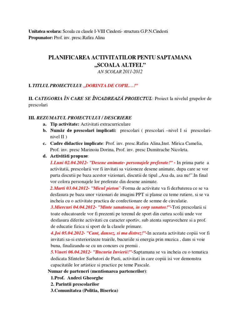 Dar tocmai în el stă rezolvarea intrigii, de el depinde raportul și schimbul de forțe dintre persoanjele principale. Colaboratoarele noastre au fost cadrele didactice: Raport de activitate pentru programul școala altfel.