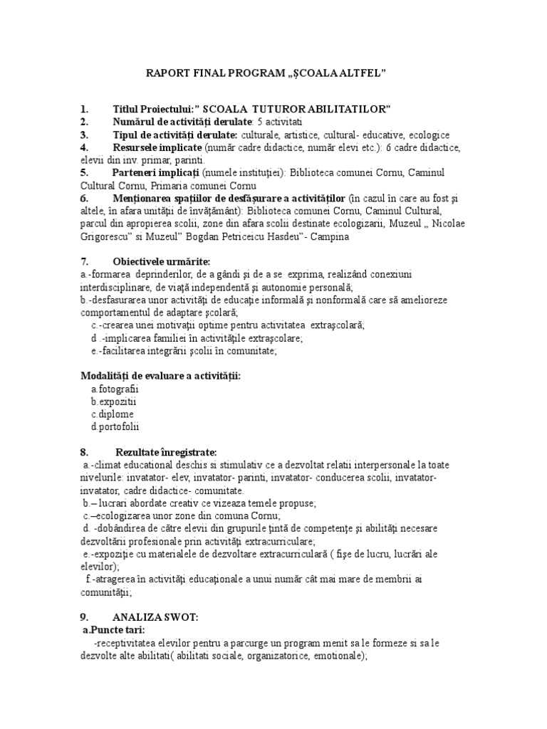 0 ratings0% found this document useful (0 votes). 1,046 likes · 2 talking about this. Raport final program şcoala altfel numărul de activităţi derulate: